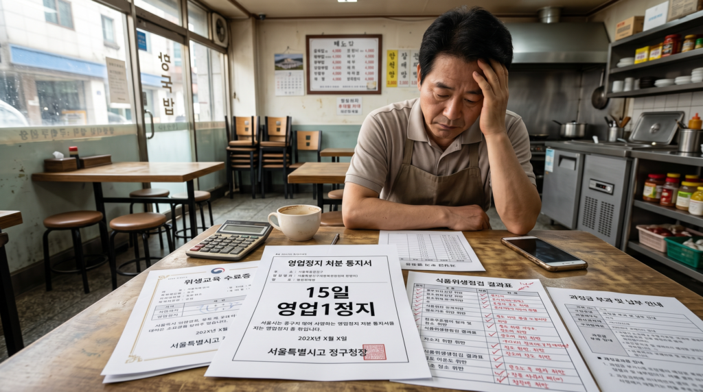 식당, 카페, 정육점, 판매점, 위생업소를 운영하는 분들에게 영업정지 15일은 단순한 행정처분이 아닙니다.