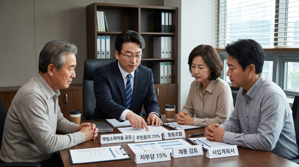 2026 햇빛소득마을 공모 핵심요건 총정리: 협동조합, 주민동의 70%, 300~1,000kW, 자부담 15%