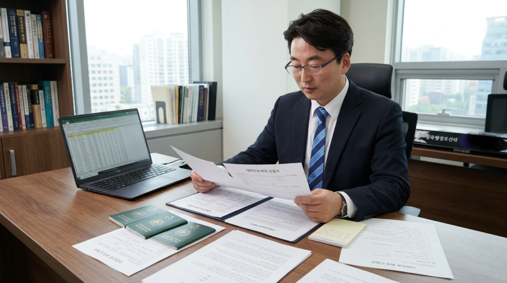 - 자료 검토: 계약서, 재직증명, 사업자료, 가족관계 자료, 학력·경력 자료 등 점검
